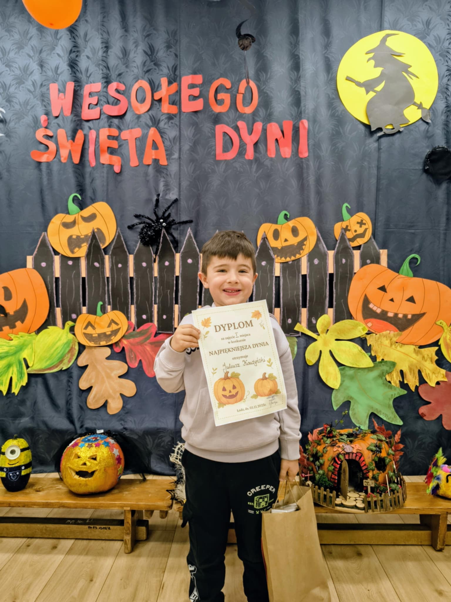 W dniu 03.11.2025r w naszym przedszkolu odbyło się podsumowanie konkursu na „Najpiękniejszą dynię”. Do konkursu zgłoszono mnóstwo niepowtarzalnych i wyjątkowych prac, które stanowiły piękną dekorację w naszej placówce. Bardzo trudno było wybrać jednego zwycięzcę, dlatego przyznano nagrody za kilka miejsc egzekwo oraz za udział w konkursie. Wszystkim uczestnikom gratulujemy i zapraszamy do udziału w kolejnych konkursach.